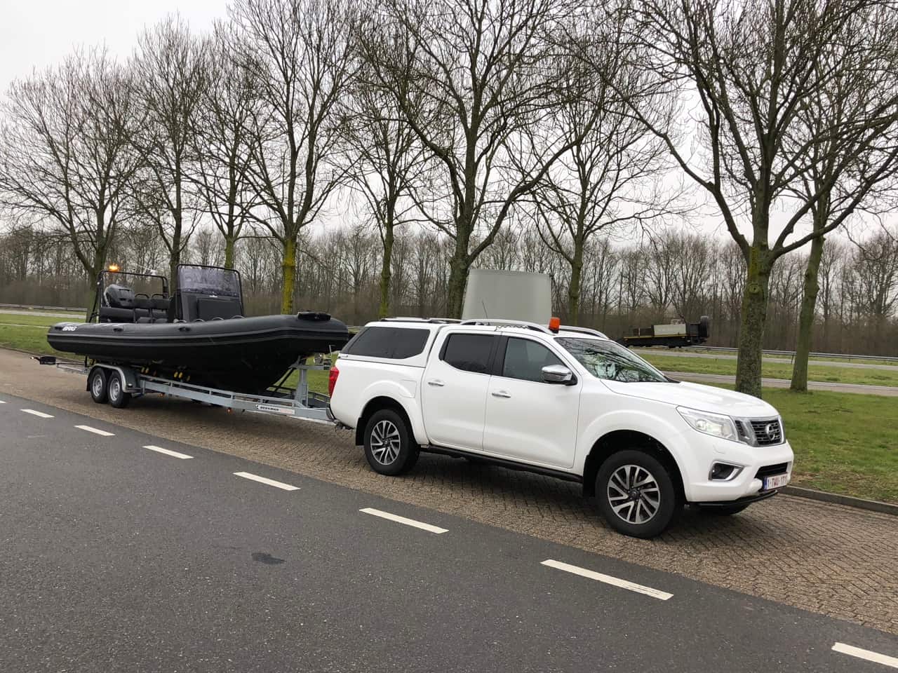 De aankoop noodzaakte ook de aankoop van een nieuw trekkend voertuig, een NISSAN NAVARA, model TEKNA met een trekvermogen van 3,5ton. Geen klus dus te groot voor deze machine, die uiteraard 4-wiel aangedreven is.